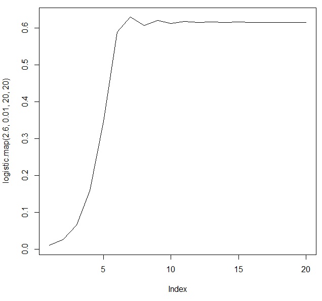 plot(logistic.map(2.6,.01,20,20), type="l")