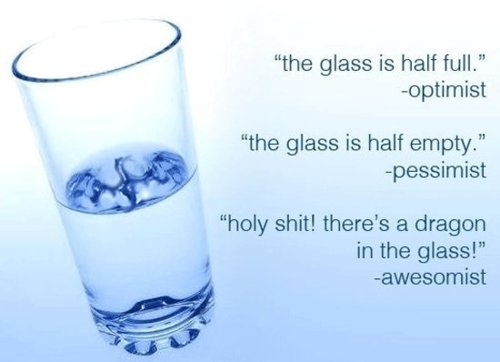 Whose viewpoint would this be: “The glass is twice as big as it should be”?